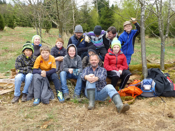 Bei kühlen Temperaturen am Dienstag vor Ostern starteten 9 E Jugendspieler des SV Igling und 12 Kinder der Ferienbetreuung zur Baumpflanzaktion. Zu Fuß marschierten die Kinder zum Parkplatz beim Sommerkeller. Dort vervollständigte die Zeitungsente Paula Print die Gruppe. Gemeinsam wanderte man noch etwa 15 Minuten durch den Wald Richtung Osten, wo die Kinder und die Betreuer sich mit E-Jugendtrainer Peter Scheck und mit Bolko Zencominierski trafen, der diese Aktion unterstützte und auch den Grund zur Verfügung stellte.