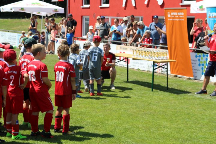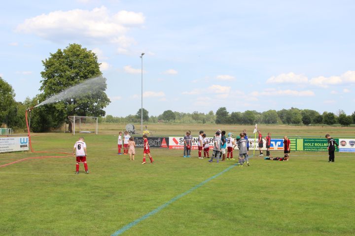 Da die Freude und der Spaß am Fußball bei allen Beteiligten im Vordergrund stehen soll, spielten, wie bereits im Vorjahr, unsere Bambinis aus der G-Jugend ihre Spiele in der Turnierform des Minifußballs. Damit sich jedes Kind als Sieger fühlt wurde hier heuer erstmalig auch ohne Tabelle gespielt. Eine super Sache um die Kinder langsam zum „richtigen“ Fußball hin zu führen, welcher bei unserem Sommerturnier der D-Junioren mit Abseitsregel usw. auch bestaunt werden konnte. Am Ende erhielt jedes Kind einen in der heißen Sonne toll glitzernden Pokal, die wir Dank der Unterstützung unserer großzügigen Sponsoren