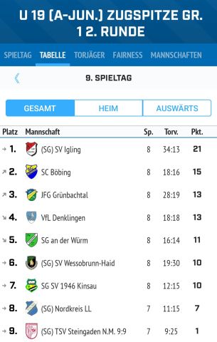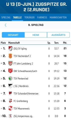 Den anderen Weg gehen mussten die D1-Junioren (U13), die SG SV Igling/Erpfting, gehen. Nach einer Auftaktniederlage machte das Team von Trainer Christian Hauber Platz um Platz gut, um am vorletzten Spieltag mit einem 5:0 gegen den direkten Konkurrenten aus Hechendorf die Tabellenführung zu übernehmen.