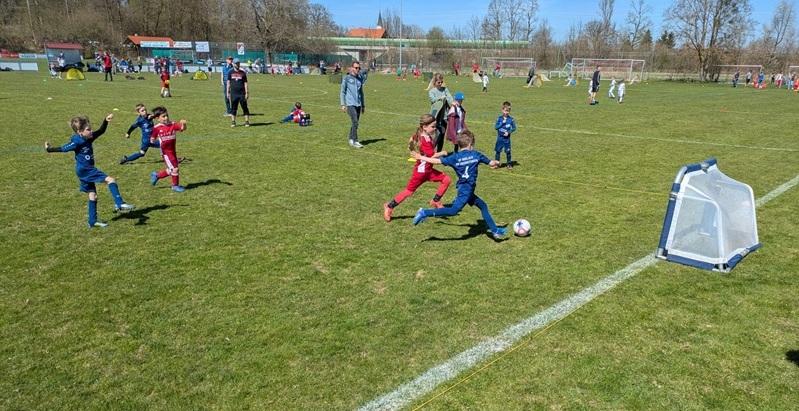 Am 12. April war auf dem Iglinger Sportplatz wieder richtig was los: Bereits zum zweiten Mal in dieser Saison veranstaltete der SVI ein Minifußball-Festival – und das mit Rekordbeteiligung! 18 Bambini- und G-Jugend-Teams waren diesmal am Start und verwandelten den Platz in eine wuselige Fußballwelt. Auf neun Mini-Feldern wurde gleichzeitig gekickt, gelacht, geweint und gejubelt. Gespielt wurde im Champions-League-Modus: Wer ein Spiel gewann, durfte ein Feld nach oben wandern, wer verlor, musste eins runter – so gab’s spannende Duelle auf Augenhöhe.