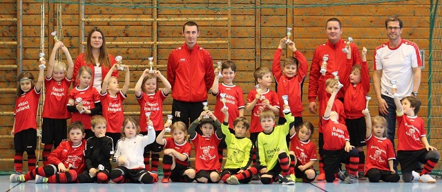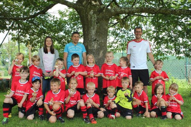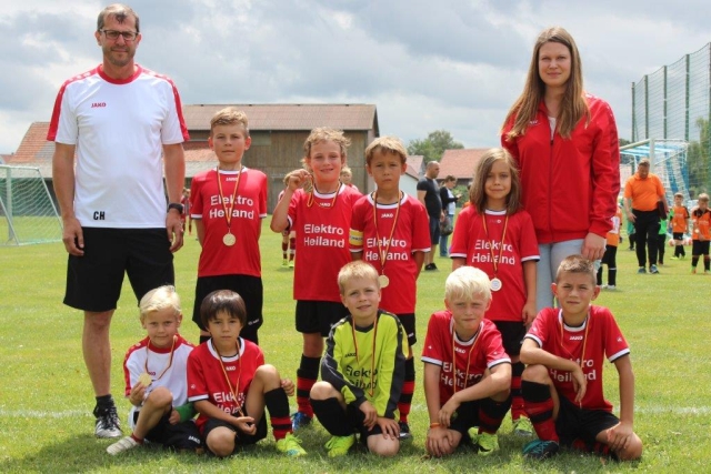 In vielen, immer fairen Spielen stellten unsere Jüngsten aus der G1- und G2-Jugend (Jahrgang 2009 bis 2012) sowie die F-Jugend (Jahrgang 2007 und 2008) ihr Können unter Beweis. Auch die Ergebnisse konnten sich sehen lassen: die G1 erreichte den 3. Platz, die F-Jugend den 5. Platz und schließlich gewann die G2 am Sonntag ihr Turnier. Im Vordergrund standen allerdings der Spaß am Spiel und die Freude über den goldenen Pokal, den jeder Teilnehmer am Ende entgegennehmen durfte!