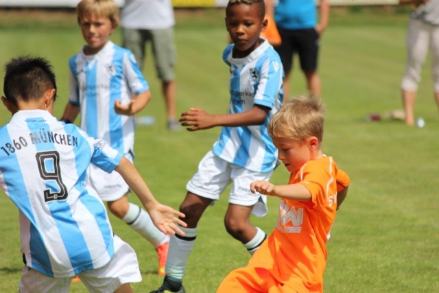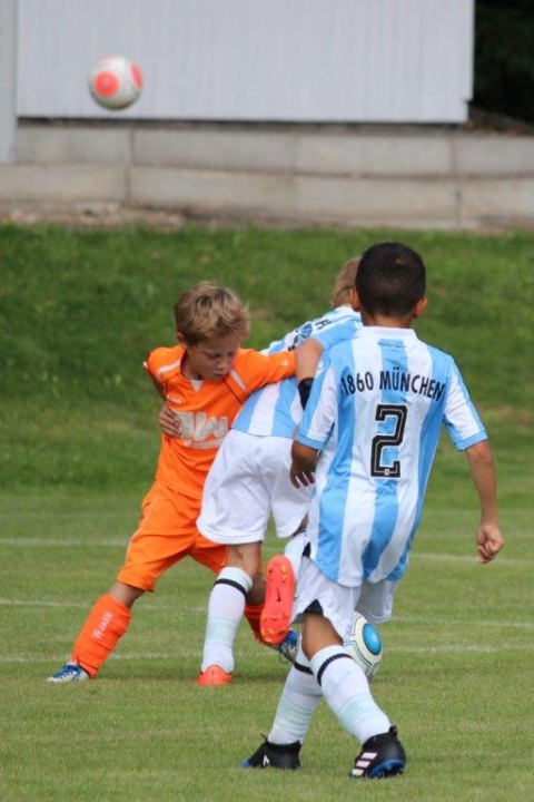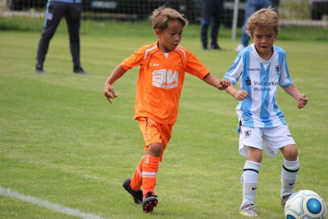 Zum Saisonabschluss gab es für einige Spieler unserer Kleinfeldmannschaften (U7 – U11) noch ein besonderes Zuckerl. Auf Einladung der FT Jahn Landsberg nahmen unsere Jungs an einem kleinen Blitzturnier teil, dessen Höhepunkt ein Spiel über volle 40 Minuten gegen die F-Jugend (U9) des TSV 1860 München war. Mit viel Elan und Kampfgeist nahmen die Spieler die Herausforderung an und schlugen sich trotz Verletzungspech wacker. Sie hielten insgesamt bravourös dagegen, mussten aber die individuelle (Schuss-)Stärke des Gegners, der seine Spieler aus ganz München und dem Umland zusammenzieht, anerkennen. Das Ergebnis von 1:13 war vollkommen nebensächlich, dennoch war die Freude über den eigenen Torerfolg – praktisch mit dem Schlusspfiff – groß: Henri konnte, nach toller Vorarbeit von David und Tobias, den verdienten Ehrentreffer erzielen. Besonders hervorzuheben bleibt insbesondere der faire und sympathische Auftritt der Junglöwen und deren Trainerteam – eine tolle Erfahrung für unsere Jugendspieler!