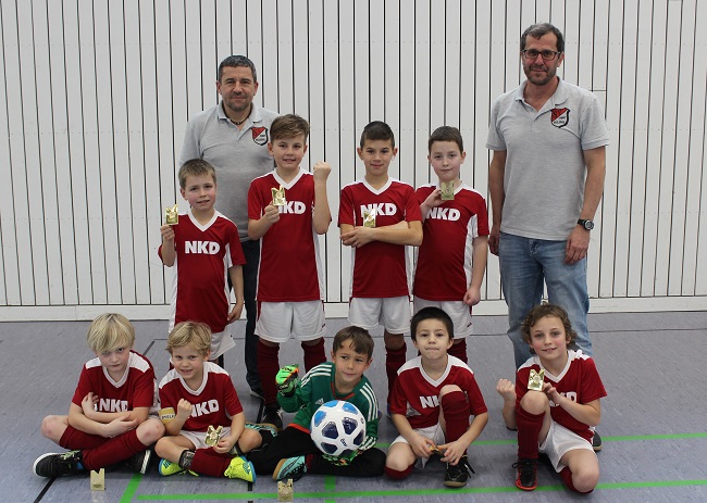 Das gleiche Bild zeigte sich beim Wiedersehen mit Kleinaitingen im Finale. Beide Tore beim 2:0 Endstand entsprangen aus toll heraus gespielten Kombinationen. Am Ende war es ein überraschender, bejubelter, verdienter – und von manch „altem Hasen“ sehnlichst herbeigesehnter! – Turniersieg, bei dem alle Spieler ihr Bestes gegeben haben und stolz den stattlichen, goldenen Pokal in Empfang nehmen konnten. Torschützen: Anselm (2), Henri (2) und Torschützenkönig David (6)